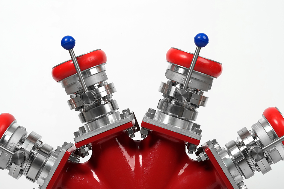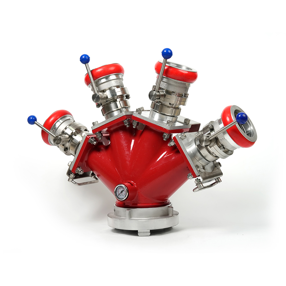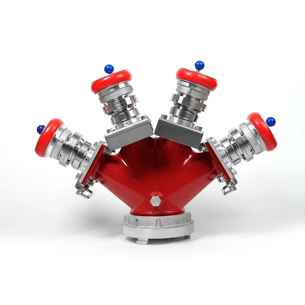 موزع خرطوم النار القفل هو مقسم لمياه مكافحة الحرائق مزودة بآلية قفل مضادة للاعتداء ، مصممة لتقسيم تدفق المياه الواحد إلى تيارات متعددة. تم تجهيز كل منفذ بـ صمام تسيطر عليه بشكل مستقل.