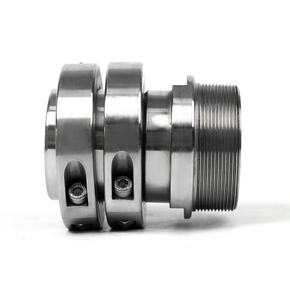 يتصل اقتران التعدين الخيوط بخرطوم على طرف واحد باستخدام أ مشبك خرطوم ، بينما يتصل الطرف الآخر بمعدات الألغام من خلال آلية الخيوط.